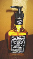 Las botellas de Jack Daniels pequeñas u otras botellas de vidrio recicladas de pequeño tamaño y diseño raro se pueden reutilizar creando como manualidad un dispensador de jabón para el baño increíble!